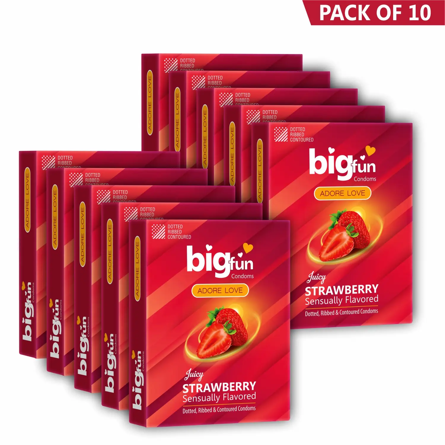 BIGFUN Dotted Strawberry Flavoured Condoms – Enhanced Pleasure & Protection (3pc x 10Packs)